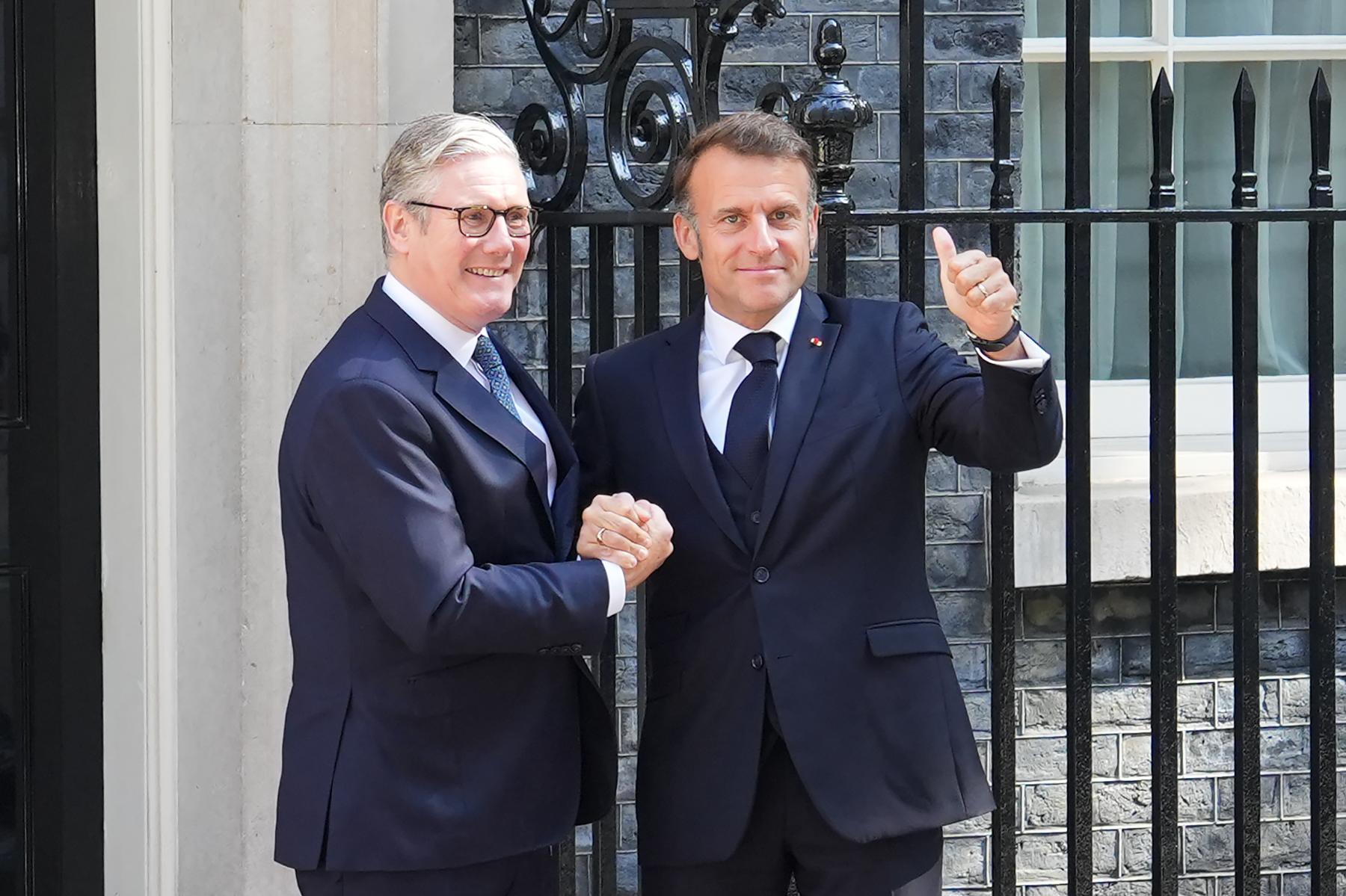 英国首相斯塔默(左)与法国总统马克龙。新华社 发